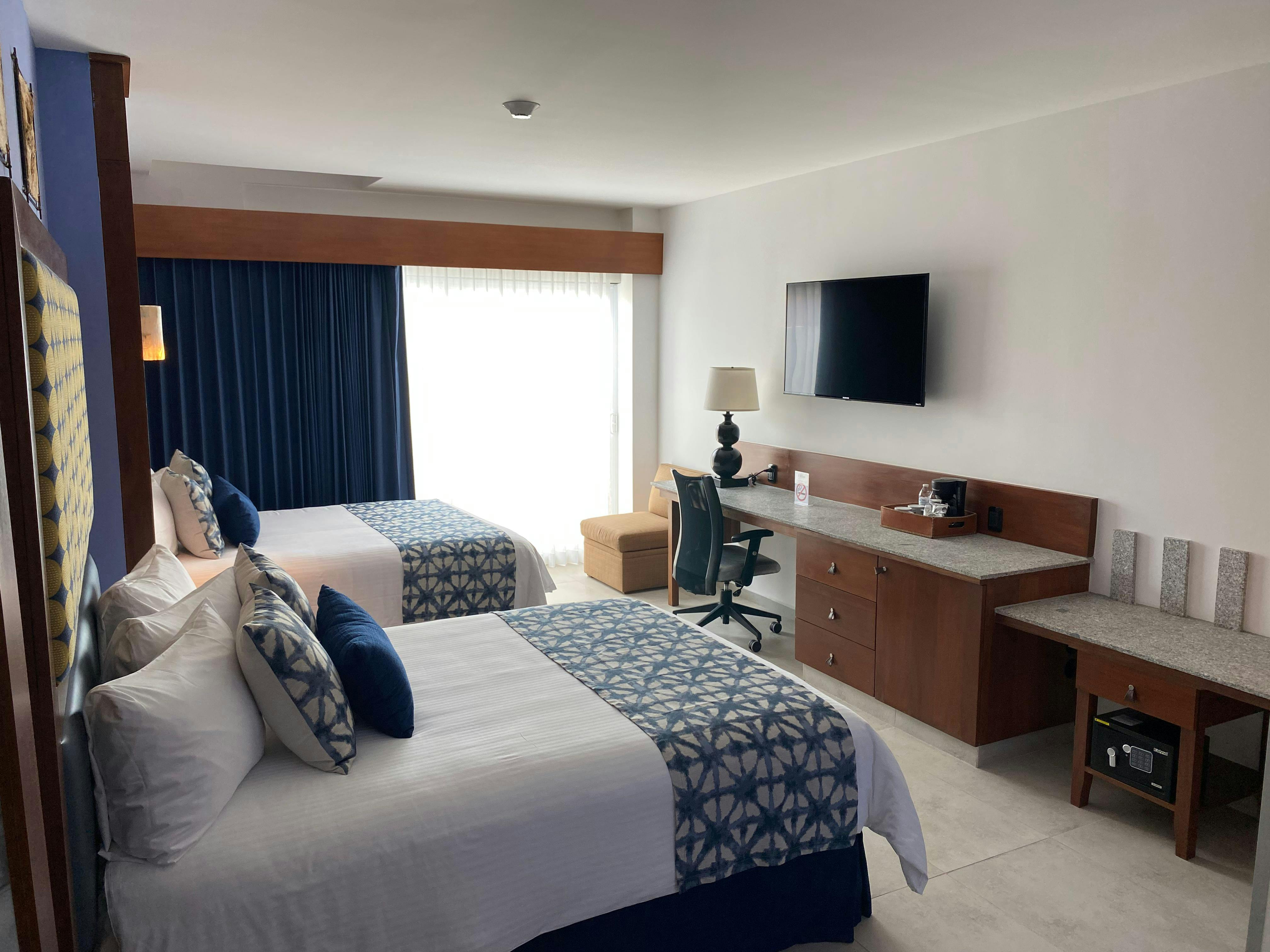 Our ground-floor double room features air conditioning, a coffee maker, cable TV, a private bathroom with a shower, and premium toiletries. It is furnished with two beds.